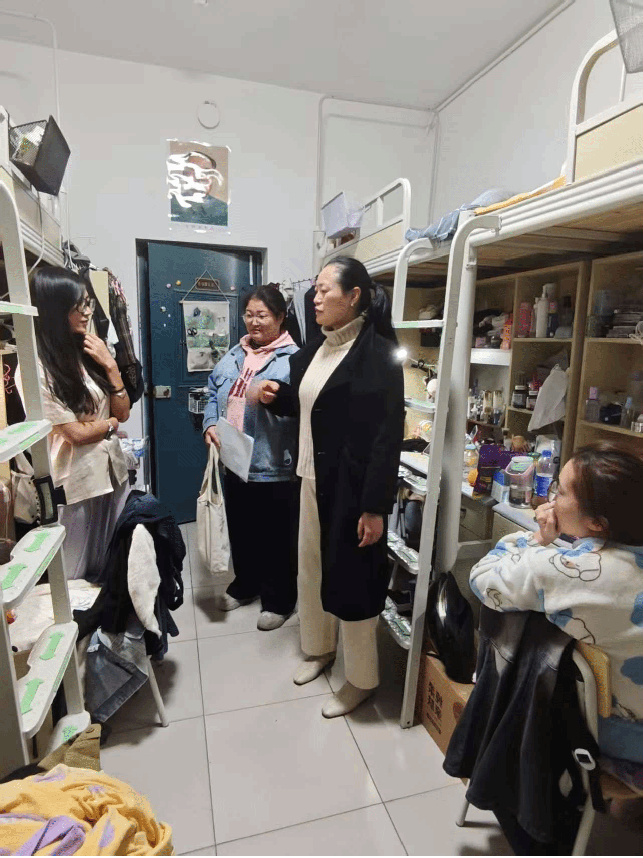 老师们走进间宿舍,与同学们亲切交,叮嘱同学们牢固树立安全意识,自觉遵守宿舍管理规定,共同维护安全、整洁、和谐的生活环境同时细致询问同学们的学习与生活近况,鼓励大家合理规划时间,注重劳逸结合,保持积极向上的精神状态,勤奋学习、踏实进取。