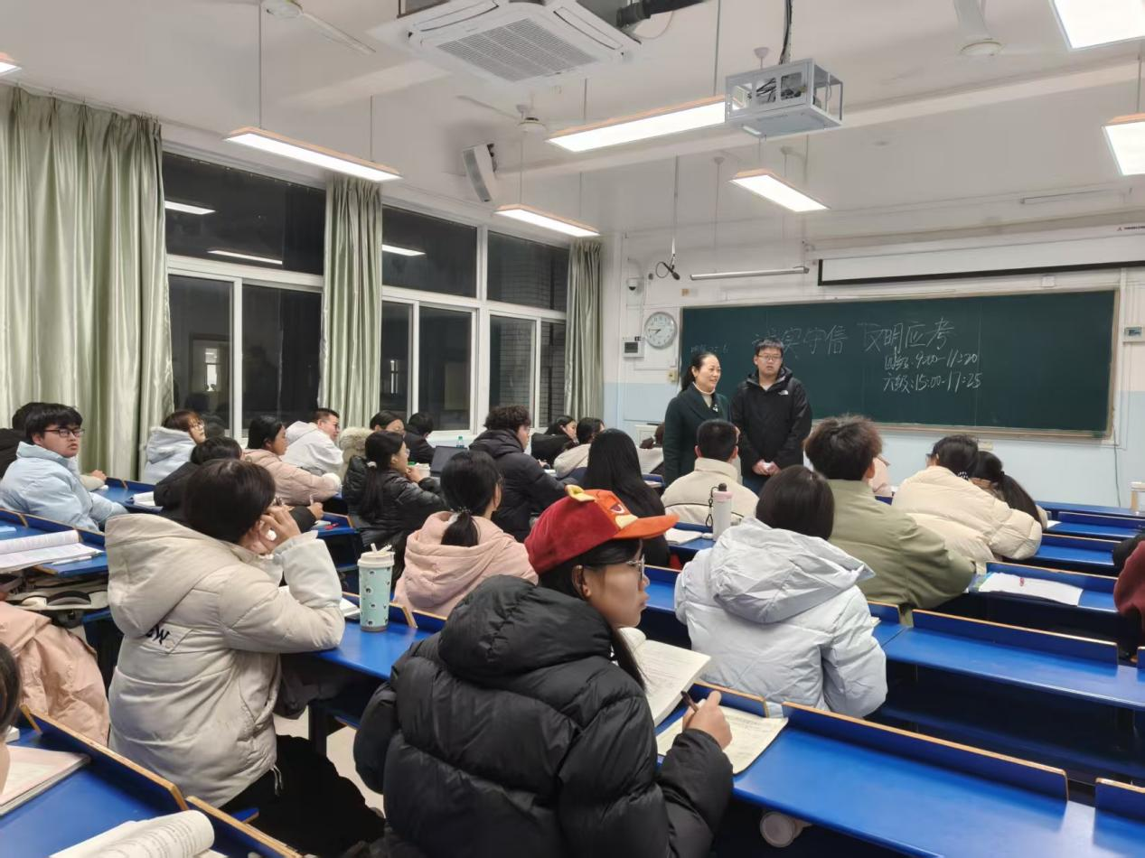 临近期末,为进一步加强考风考纪教育,引导学生树立诚信意识、端正学习态度,营造严肃规范、公平公正的考试环境近日,我院党委副书记刘彩云与学工办赵星磊老师深入晚自习教室开展晚自习检查工作。同时,开展诚信考试教育,并结合违反考试纪律的典型案例进行考试纪律教育,进一步端正考风,严肃考纪。