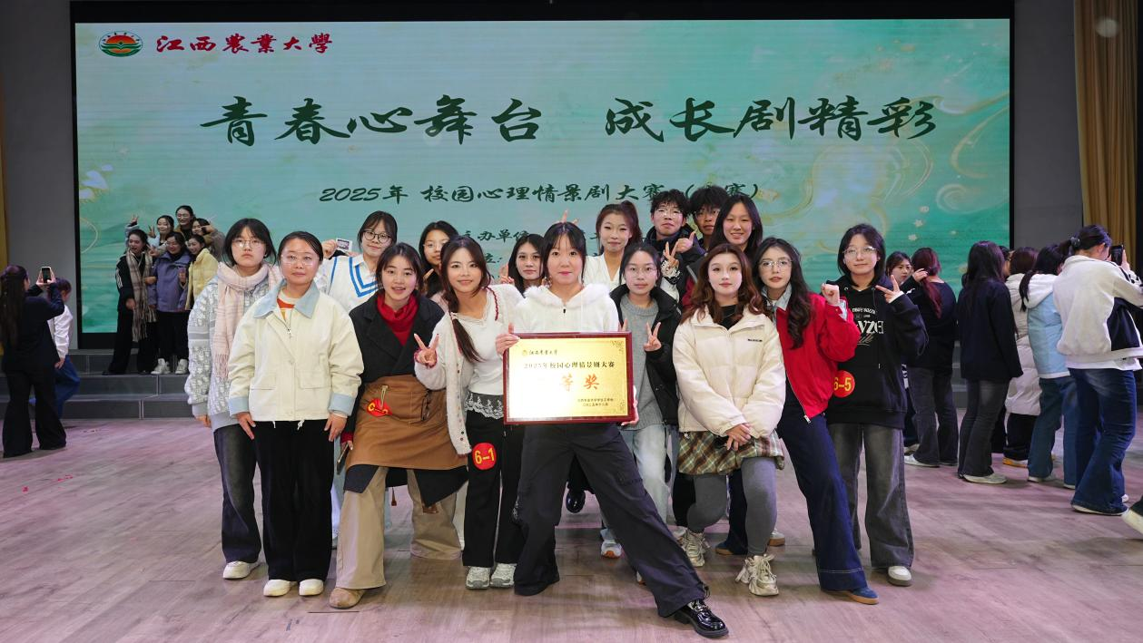 近日,在江西农业大学2025年校园心理情景剧大赛决赛中,我院选送的作品《45度的天空》凭借真挚的情感表达和贴近现实的剧情设计,赢得了评委与观众的一致好评,在校赛中脱颖而出,荣获大赛二等奖。我院扎实落实立德树人根本任务,牢固树立“健康第一”的教育理念,将心理健康工作置于更加重要的位置。心理情景剧是开展大学生心理健康教育、普及心理健康知识的生动形式。学院‘心’育林,剧写成长”为主题,旨在通过学生自编、自导、自演的舞台剧形式,展现当代大学生常见的心理冲突与成长困惑,探索积极健康的应对方式与心灵成长路径。
